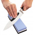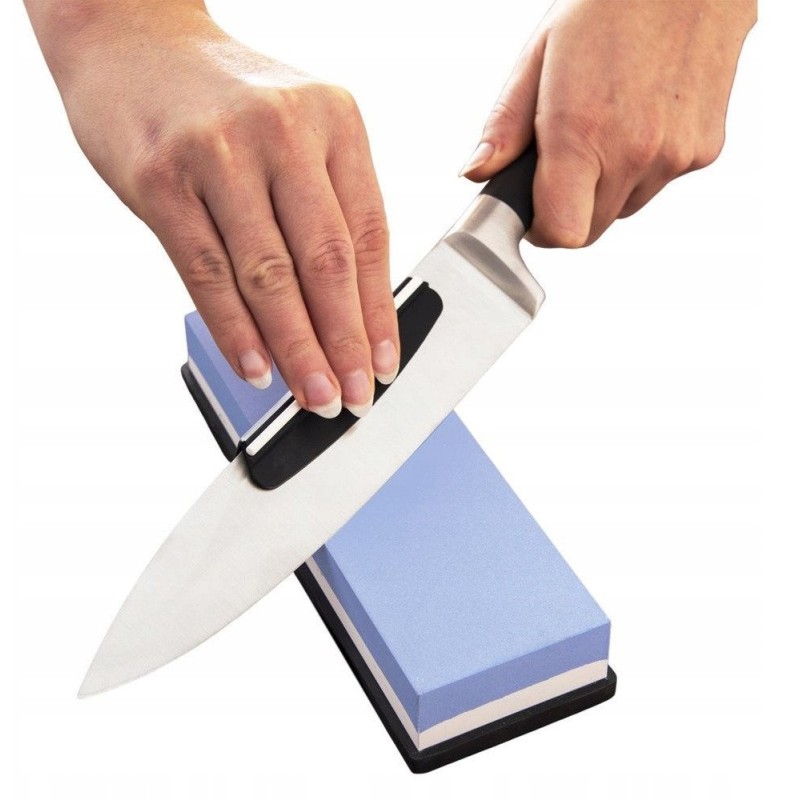 Korzystanie z ostrzałki jest proste i intuicyjne. Przed rozpoczęciem ostrzenia zaleca się moczenie kamienia w wodzie przez około 10 minut oraz jego zwilżanie podczas pracy. Po zakończeniu użytkowania, warto pozostawić ostrzałkę do wyschnięcia, co zapewnia jej długowieczność i efektywność.