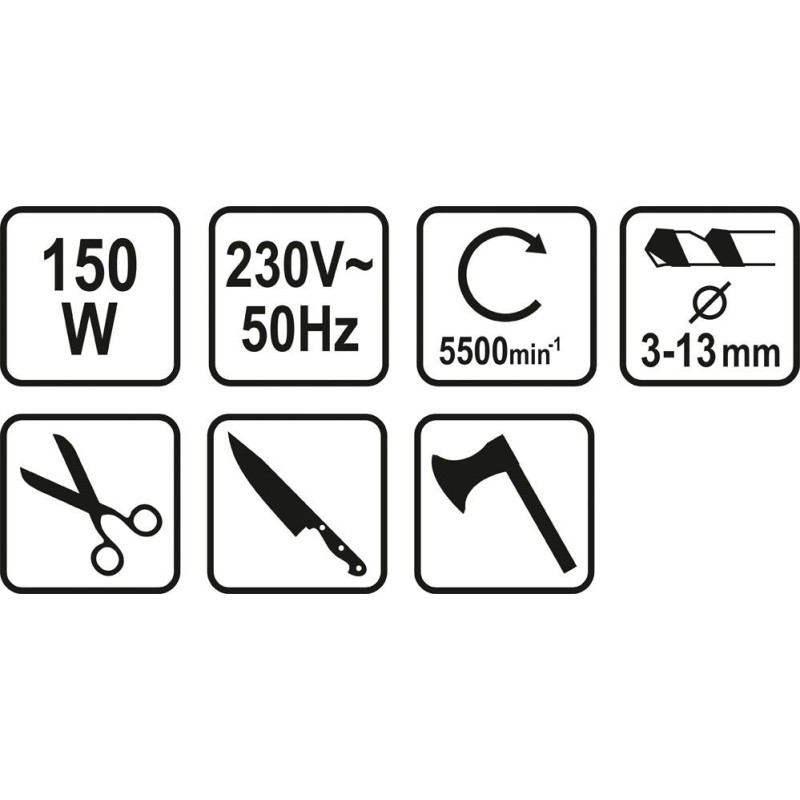 - Ostrzałka wielofunkcyjna 150 W do ostrzenia stalowych wierteł 3 mm -13 mm, noży, nożyczek siekier i tasaków