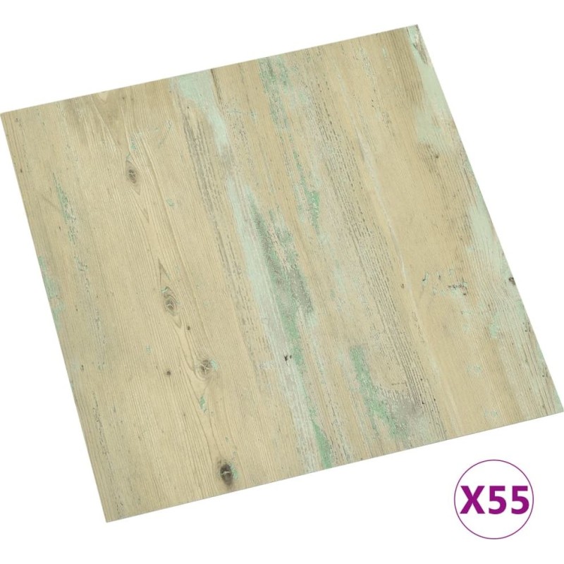 Zestaw wysokiej jakości, samoprzylepnych paneli podłogowych z PVC obejmuje 55 sztuk, z których każda ma wymiary 30,5 x 30,5 cm, a razem pokrywają powierzchnię 5,11 m².