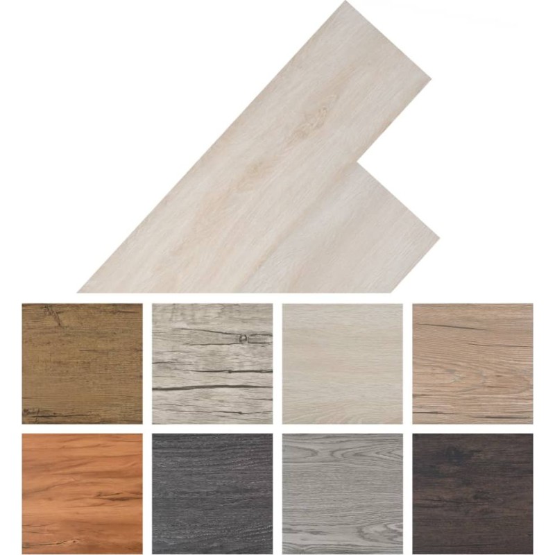 Zestaw samoprzylepnych paneli podłogowych z PVC zawiera 28 paneli, każdy o wymiarach 30,5 x 61 cm, co umożliwia pokrycie powierzchni 5,21 m². Przypominają one wyglądem deski z prawdziwego drewna, oddając wzory i strukturę naturalnego drewna, ale są od niego bardziej wytrzymałe i mniej wymagające. Są odporne na pleśń, antyalergiczne, antystatyczne, trudnopalne, wodoszczelne i antypoślizgowe. Panele z PVC można z łatwością zamontować na dowolnej utwardzonej i równej powierzchni dzięki ich samoprzylepnym spodom. Spełniają europejskie standardy, takie jak klasyfikacja ogniowa wyrobów budowlanych i elementów budynków (EN 13501-1), odporność kolorów na działanie światła (ISO 105-B02), odporność na ścieranie (EN 660-2), norma antypoślizgowa (DIN 51130), odporność na rozwarstwianie (ISO 24345), norma wgniecenia resztkowego (ISO 24343-1) i wiele innych.