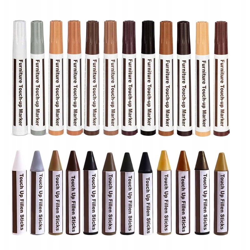 Markery w zestawie są idealne do miejsc narażonych na wycieranie, takich jak narożniki mebli, natomiast woski doskonale sprawdzają się w wypełnianiu ubytków i zabarwianiu powierzchni. Dzięki temu możesz skutecznie ukryć wszelkie niedoskonałości.