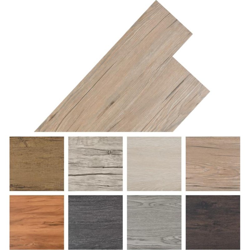 Ten zestaw 18 samoprzylepnych paneli podłogowych z PVC przypomina wyglądem deski podłogowe z drewna drzew liściastych. Imitują one wzory i strukturę naturalnego drewna, lecz są od niego bardziej wytrzymałe i mniej wymagające.