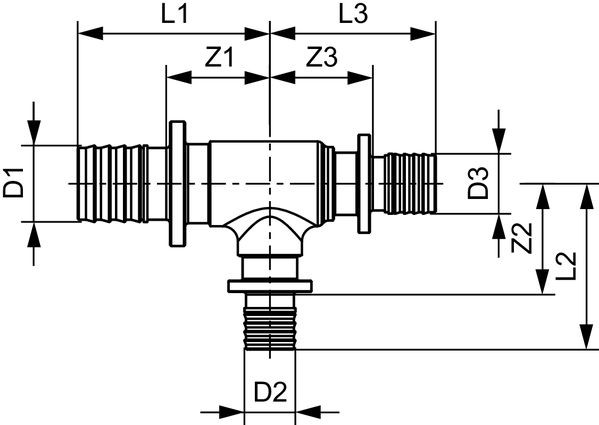 Trójnik redukcyjny TECEflex, mosiądz standard 32x25x25 (760520)