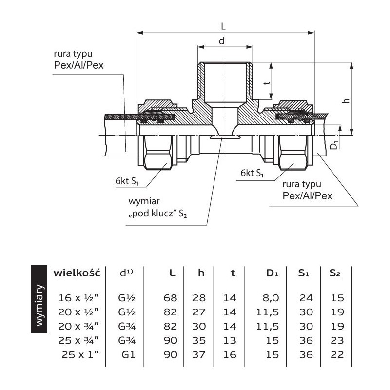 - Rozmiar: 25mm x GZ 3/4" x 25mm