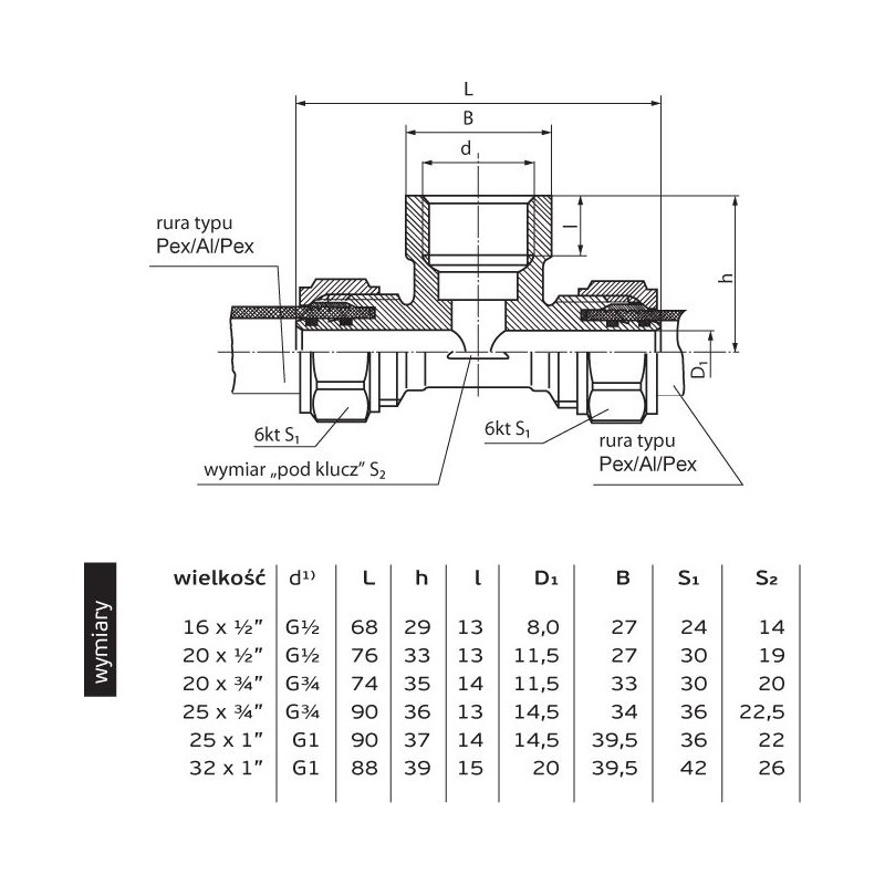 Trójnik skręcany 709 32mm x GW 1" x 32mm (61-009-3225-000)