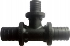 Łącznik dla systemu Rehau RAUTITAN PX, z rozszerzonym odgałęzieniem, o średnicach 25-32-25 mm, wykonany z PPSU (polifenylenosulfonu)