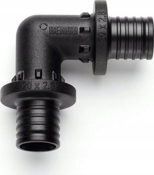 Wspaniałe kolanko 90° do systemu Rehau RAUTITAN, o średnicy 40 mm, wykonane z PPSU (polifenylenosulfonu)