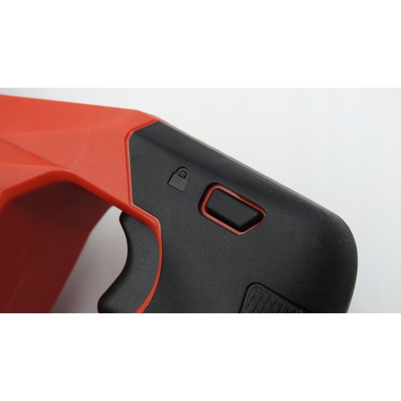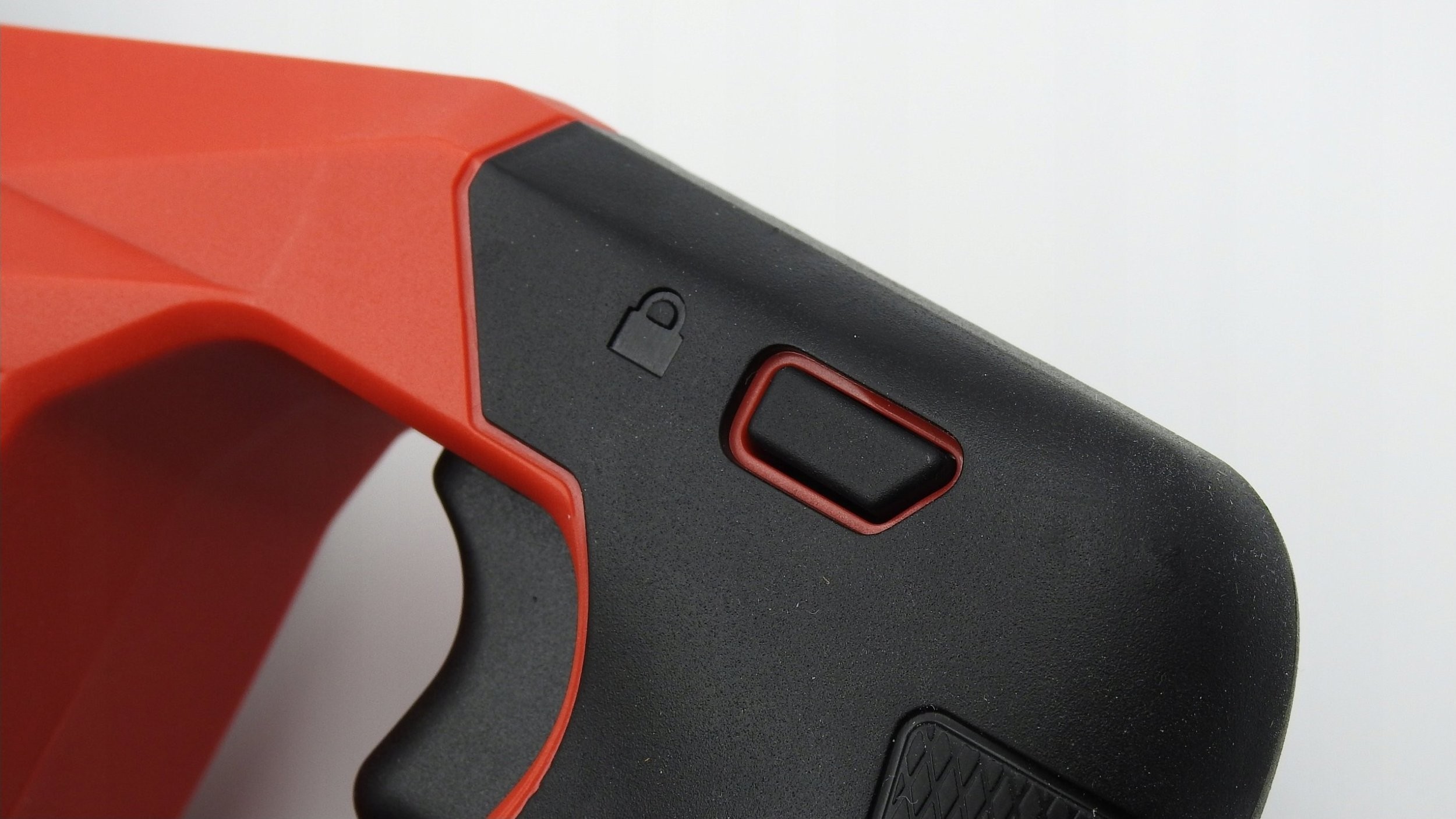 Blokada na uchwycie zapobiega przypadkowemu włączeniu narzędzia, gdy nie chcemy go używać. To pozwala uniknąć wielu niebezpiecznych sytuacji, na przykład podczas przenoszenia sprzętu.