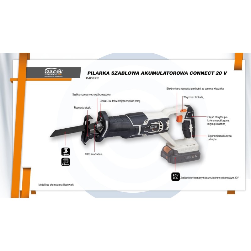 Piła szablasta Vulcan Pilarka szablowa, bez aku/ład. connect 20v