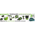 Greenworks to wysokiej klasy narzędzia ogrodowe. Głównym ich atutem jest technologia akumulatorowa. Weź przyszłość w swoje ręce - pracuj wygodnie, ekologicznie i z troską o środowisko. Obecnie firma Greenworks Tools posiada ponad 1000 własnych patentów, a wszystkie produkty spełniają wymogi i normy obowiązujące w Stanach Zjednoczonych i Unii Europejskiej.