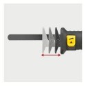 Praktyczne mocowanie brzeszczotów z systemem szybkiej, beznarzędziowej wymiany brzeszczotów. Do mocowania brzeszczotów z jednostronnym trzpieniem. Brzeszczot z uzębieniem skierowanym w dół lub obrócony o 180° w górę, do cięcia w ciasnych i trudno dostępnych miejscach.