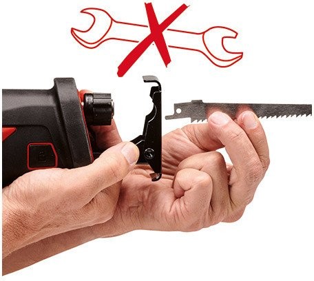 Aby optymalnie wykorzystać brzeszczot, który można w każdej chwili wymienić bez użycia narzędzi, akumulatorowa piła uniwersalna jest wyposażona w stopkę, którą można regulować bez użycia narzędzi. Przednia część piły jest również pyłoszczelna, aby chronić silnik i przekładnię.