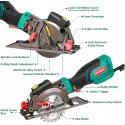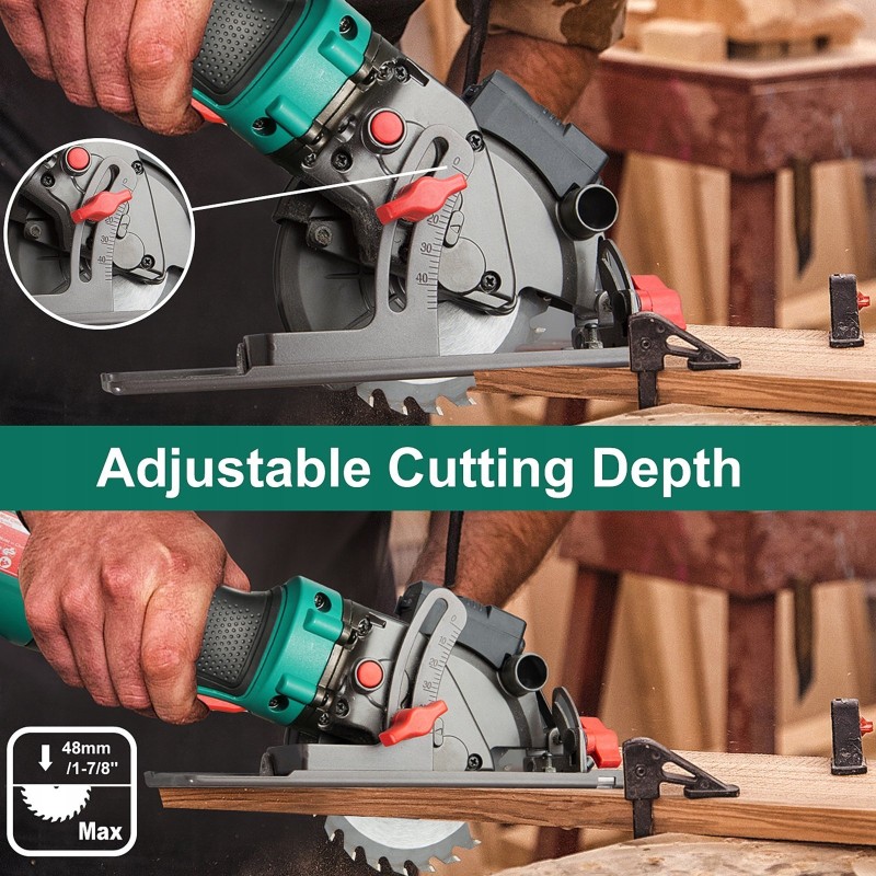 - 【Piła tarczowa z mocnym silnikiem i 6 brzeszczotami】Wydajny silnik o mocy 750 W z czystej miedzi zapewnia wysoką prędkość cięcia 3500 obr./min. . 6 brzeszczotów: 2 x 24T TCT (125 mm) do cięcia drewna / 2 x 60T HSS (115 mm) do cięcia tworzywa sztucznego i miękkiego metalu / 2-częściowe ostrze diamentowe (115 mm) do cięcia płytek.