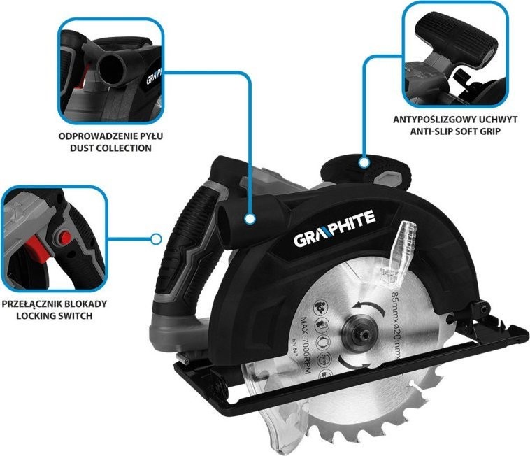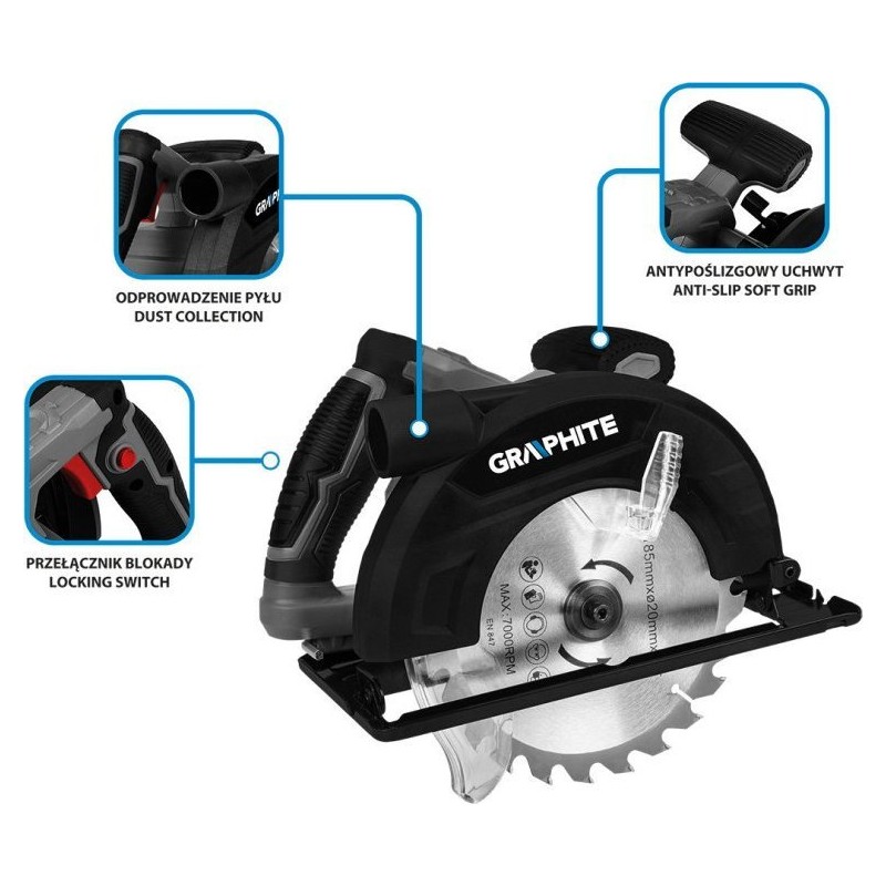 Pilarka tarczowa 1200W 185 mm 58G489 GRAPHITE