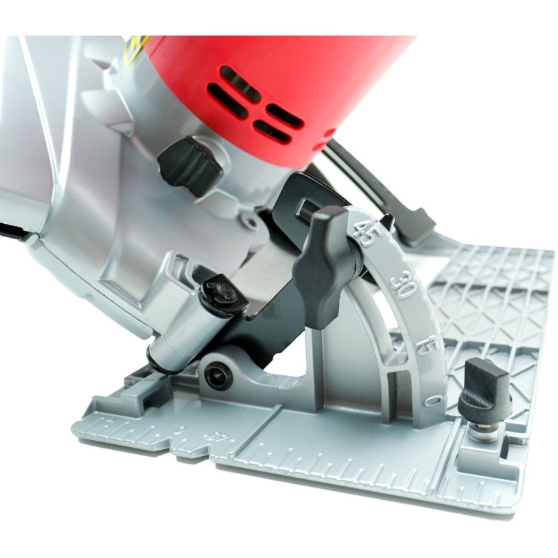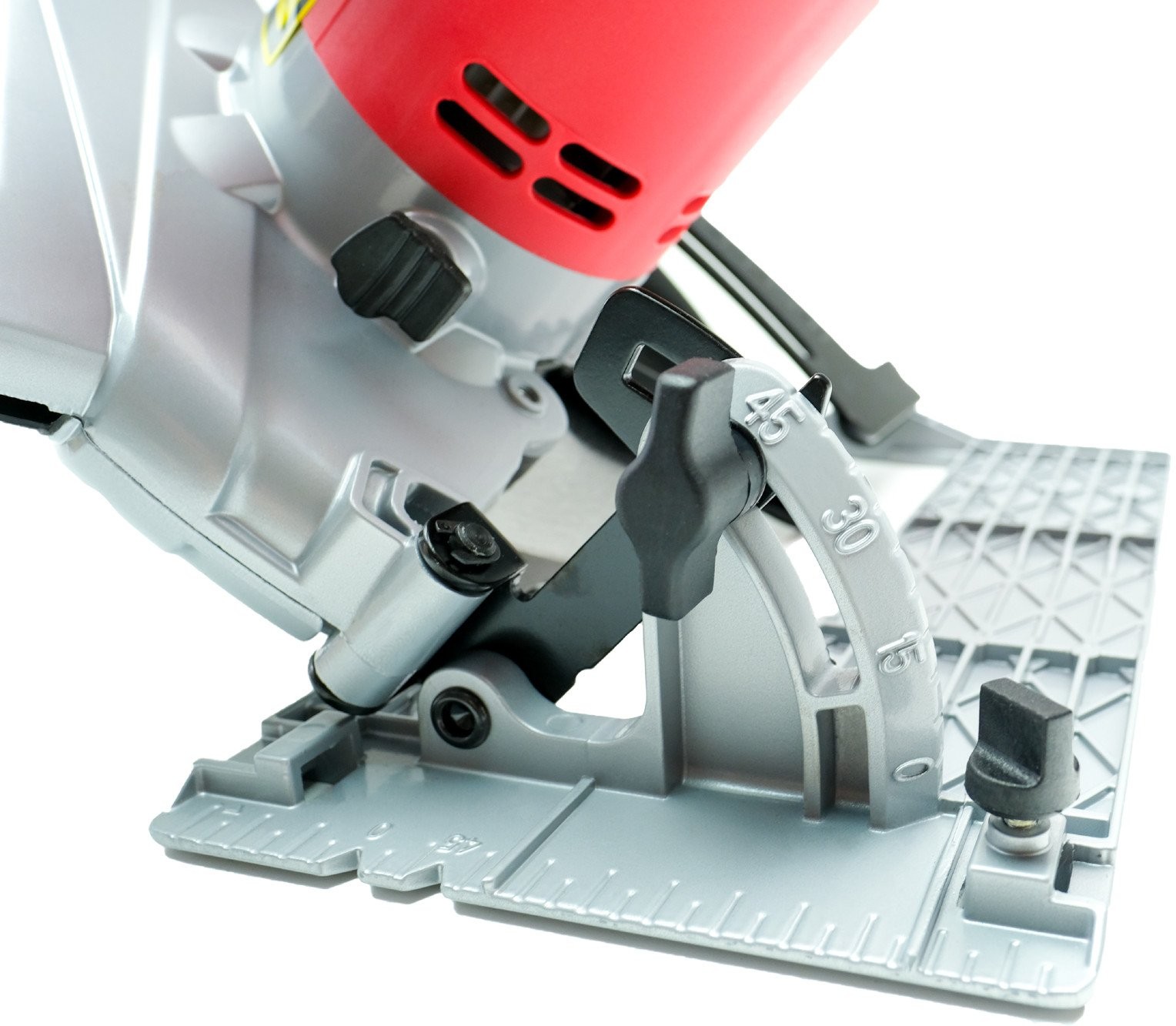 Beznarzędziowa regulacja kąta oraz głębokości cięcia usprawnia pracę (w sterowaniu parametrami pomaga specjalna podziałka).