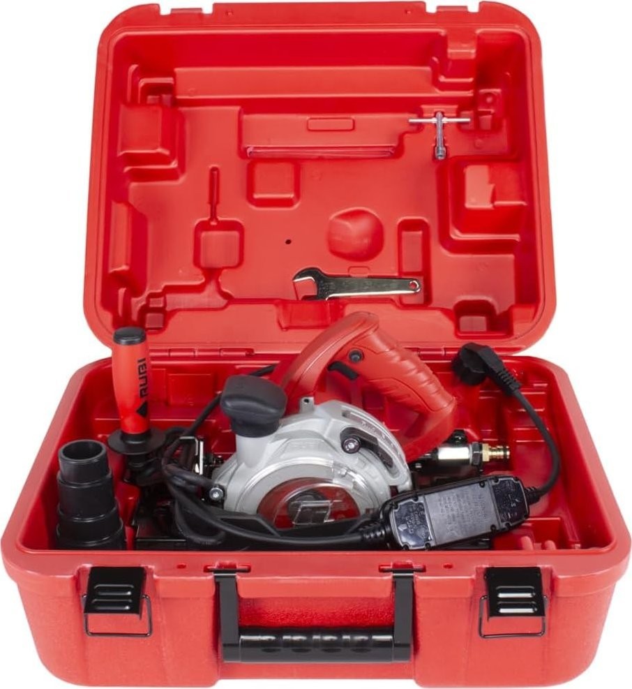W zestawie z pilarką Rubi TC-125 G2 znajduje się tarcza, niezbędne akcesoria oraz praktyczna walizka transportowa. Dzięki temu możesz łatwo przechowywać narzędzie oraz zabrać je ze sobą w każde miejsce, co jest niezwykle wygodne podczas pracy w terenie.