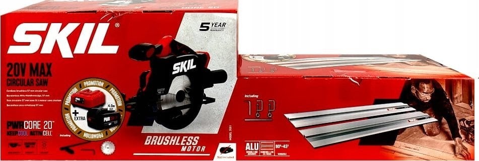 Akumulatorowa pilarka tarczowa Skil 20V 3551 AB to niezwykle wszechstronne narzędzie, które łączy moc silnika bezszczotkowego z funkcjonalnością prowadnicy. Dzięki akumulatorowi 20V 4.0Ah, pilarka zapewnia doskonałą mobilność oraz komfort użytkowania. W zestawie znajduje się tarcza o średnicy 165 mm oraz prowadnica równoległa, co umożliwia precyzyjne cięcie.