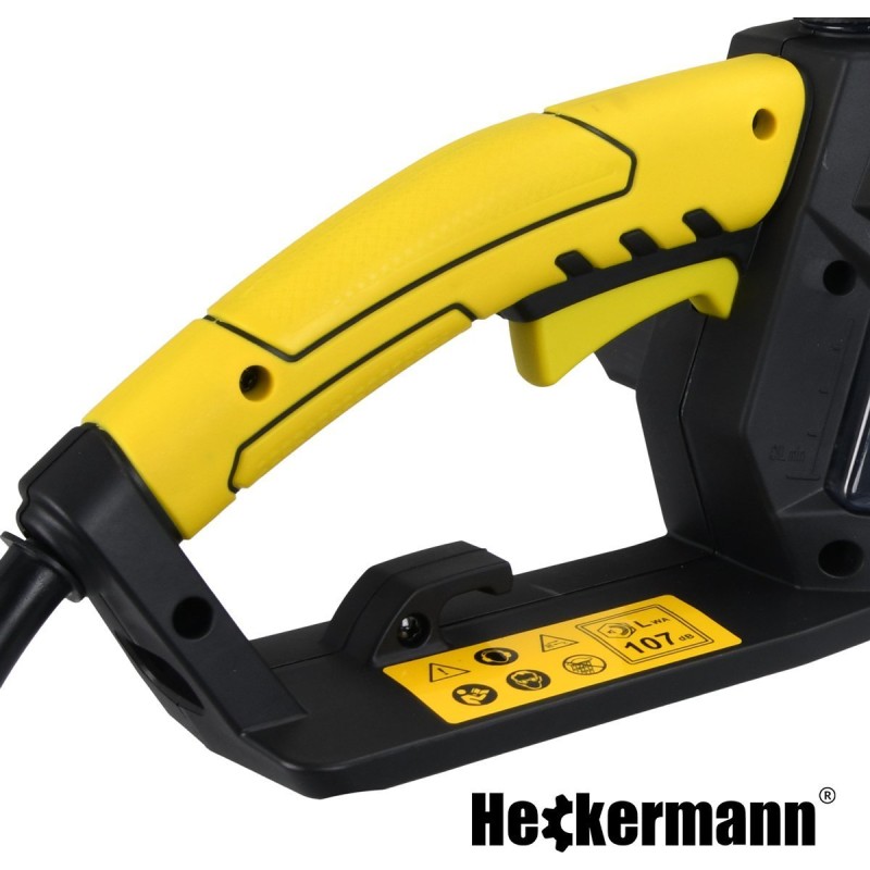 - Heckermann to wyjątkowo mocne narzędzie, idealne do wszelkich prac wokół domu i ogrodu. Jej skuteczny hamulec natychmiast zatrzymuje łańcuch w zaledwie 0,12 sekundy, zapewniając natychmiastową reakcję w przypadku niebezpieczeństwa.
