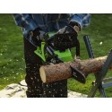Waga pilarki (bez akumulatora) to zaledwie 3,8 kg, łańcuch ma 3/8”, a prowadnica ma aż 40 cm długości - te cechy umożliwiają niezwykle wydajną i wygodną pracę. Prędkość posuwu łańcucha po prowadnicy wynosi aż 20 m/s - to znacznie większa wartość niż w przypadku pilarek spalinowych. Dzięki temu cięcie jest szybsze i bardziej precyzyjne. Urządzenie jest łatwe w obsłudze dzięki miękkiej rękojeści. Napięcie czy też wymiana łańcucha nie wymaga stosowania dodatkowych narzędzi.