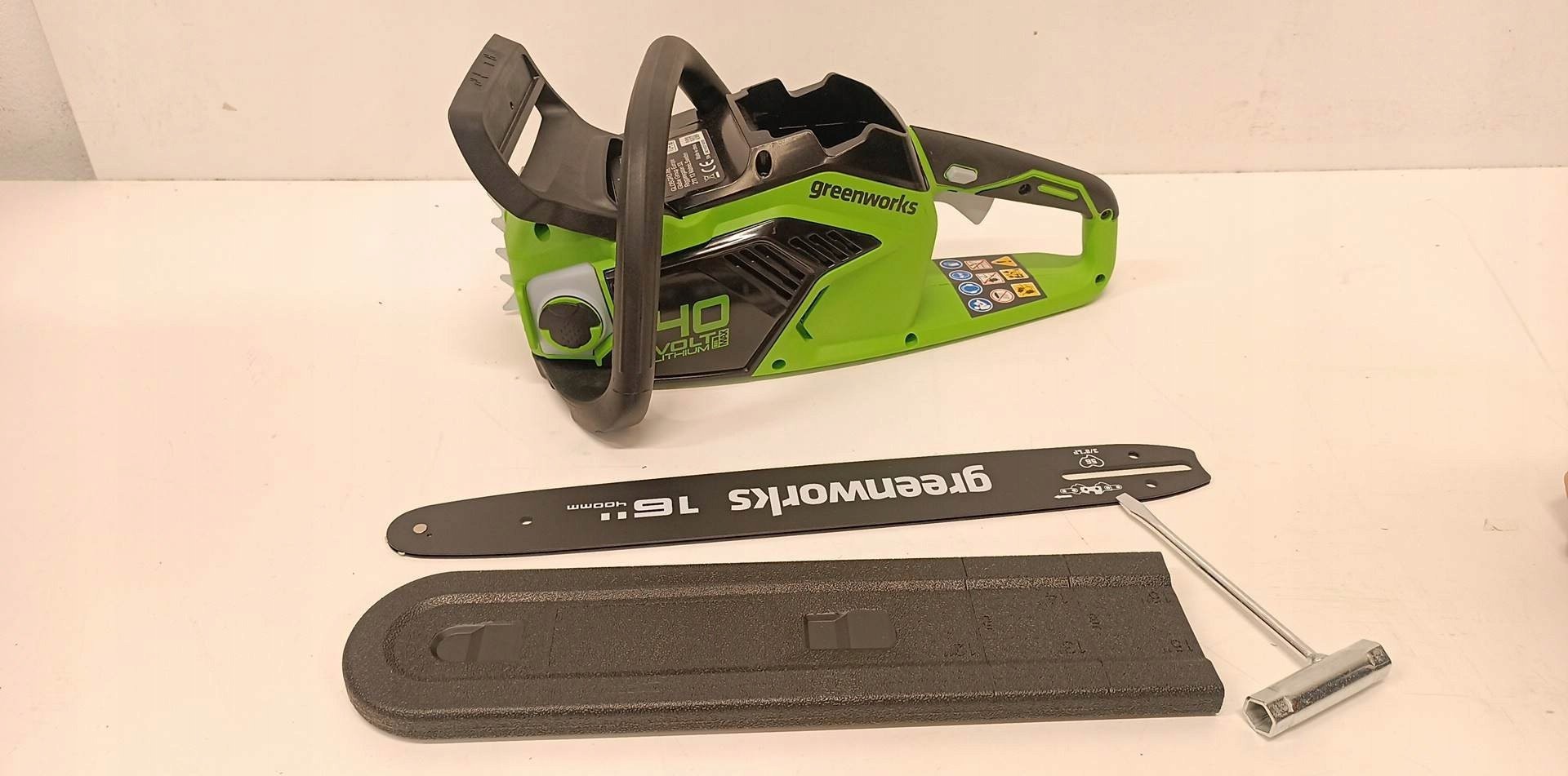 40V elektryczna pilarka łańcuchowa 40 cm Greenworks GD40CS18K2X zestaw ładowarka + 2x a