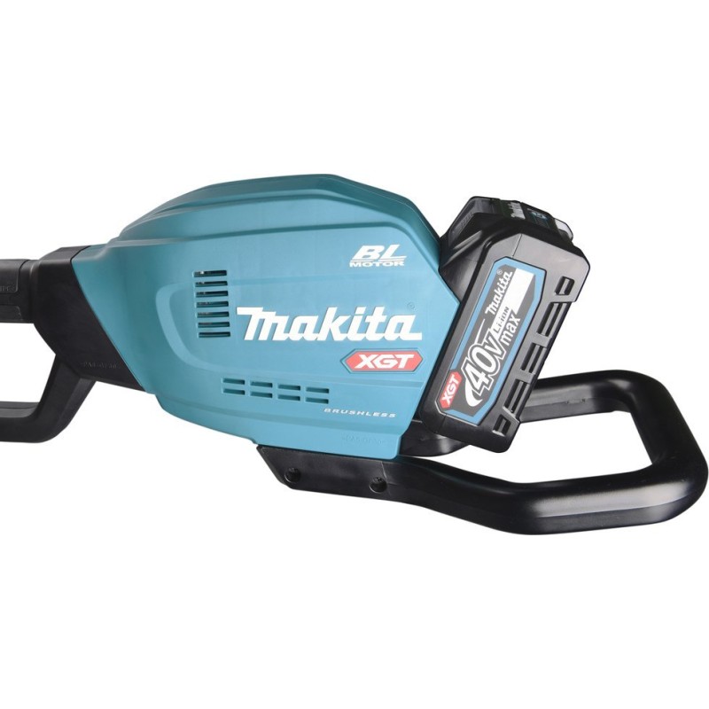 Akumulatorowa okrzesywarka z wysięgnikiem zasilana akumulatorem XGT o dużej mocy, wyposażona w silnik bezszczotkowy, który zapewnia taką samą lub wyższą wydajność pracy, jak modele spalinowe z silnikiem o pojemności 35 cm³.