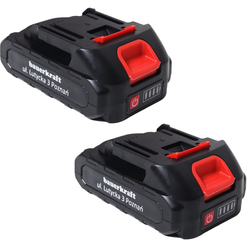 - 2 akumulatory Li-Ion, 2.0 Ah, 21V z diodowym wskaźnikiem poziomu naładowania