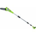 Akumulatorowa piła na wysięgniku G24PS20 firmy Greenworks sprawdzi się przy trudnych pracach, takich jak przycinanie wysokich drzew. Piła posiada automatyczny system smarowania z przezroczystym zbiornikiem. Prowadnica o długości 20 cm Oregon i łańcuch zapewniają optymalną wydajność cięcia. Teleskopowy, składający się z trzech części trzonek pozwala na pracę na różnych wysokościach.