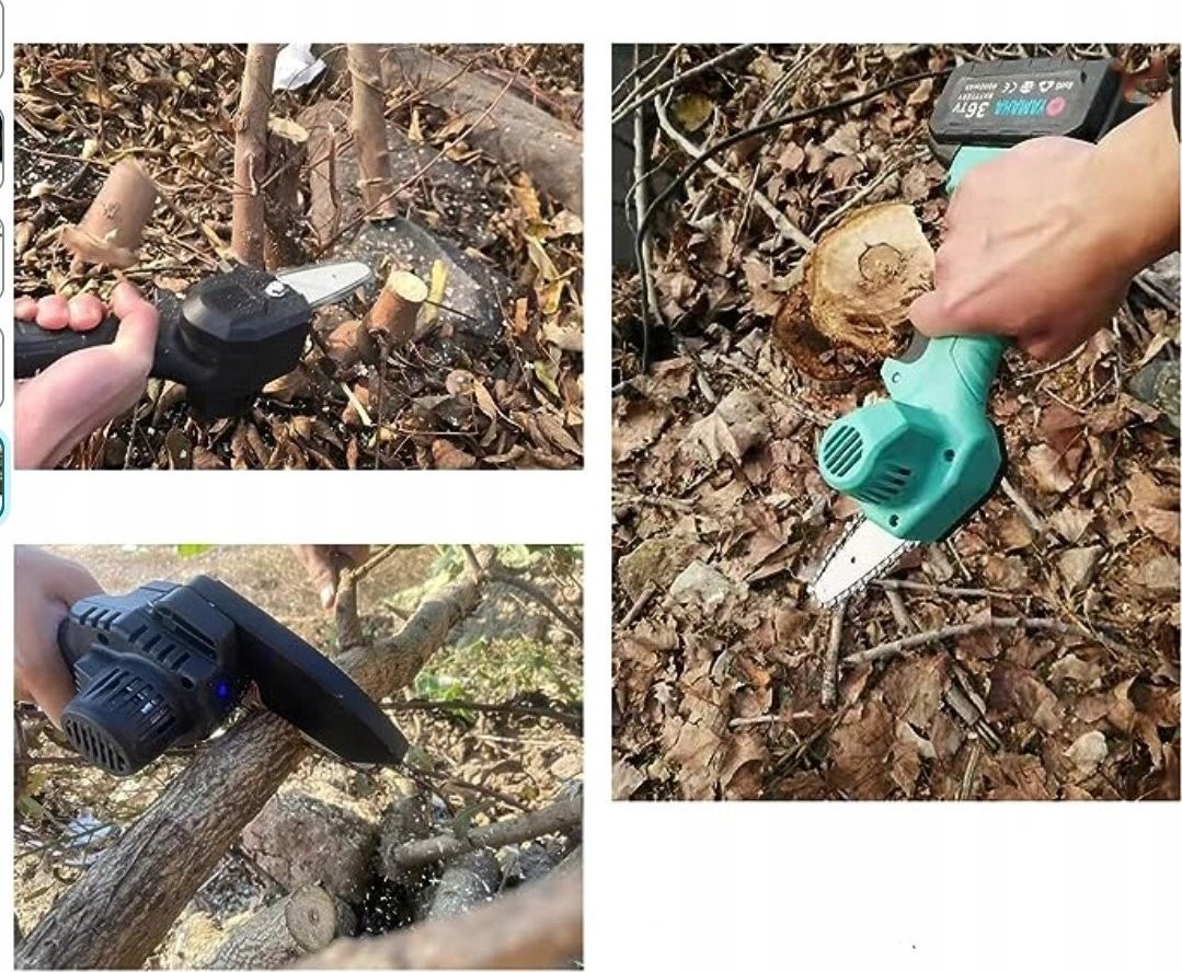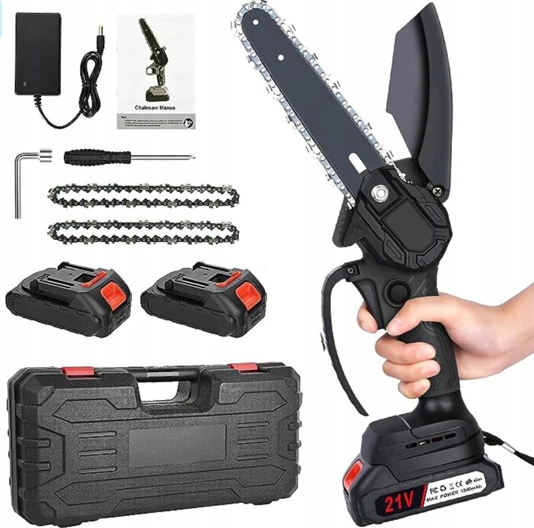 ✅ Akcesoria: W zestawie znajdują się dodatkowe akcesoria, takie jak śrubokręt, prowadnica i łańcuch 4", klucz francuski, ładowarka. Śrubokręt może służyć do regulacji lub wymiany elementów pilarki. Prowadnica jest elementem, który prowadzi łańcuch podczas cięcia, a łańcuch jest głównym narzędziem do cięcia drewna.