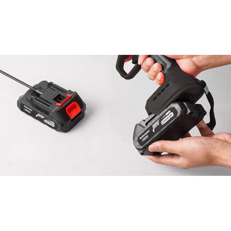 ⭐ Akumulatorowa piła łańcuchowa została wyposażona w pojemny akumulator litowy 1500mAh, który może pracować bez przerwy nawet 60-80 minut.