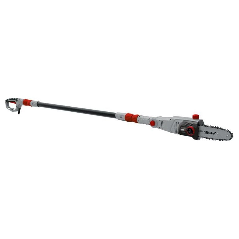 Wygodny teleskopowy uchwyt z aluminiowymi przedłużkami, stabilna, lekka konstrukcja, 3 położenia głowicy tnącej, piankowy uchwyt 30cm, prowadnica 8", baznarzędziowy system napinania łańcucha, automatyczne smarowanie, Prędkość łańcucha 11m/s, pas podtrzymujący z szybkim odpinaniem urządzenia.