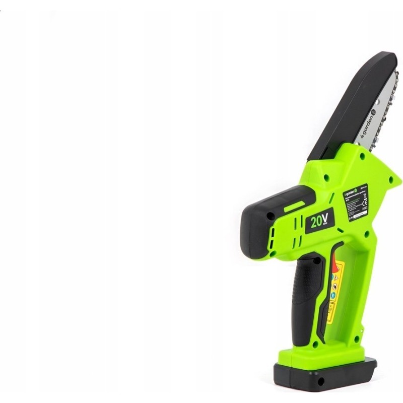 Wydajna pilarka na akumulator (gałęziówka) 20V z prowadnicą o długości 10 cm. Zawiera baterię 2,0 Ah i ładowarkę.