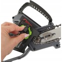 Napinanie łańcucha pilarki może stać się bardzo łatwe dzięki specjalnemu, beznarzędziowemu systemowi szybkiego napinania łańcucha. Już nigdy więcej nie będziesz potrzebował żadnych dodatkowych narzędzi podczas wymiany łańcucha i prowadnicy. Przekręć małe pokrętło regulacyjne znajdujące się na urządzeniu w kierunku przeciwnym do ruchu wskazówek zegara, aby poluzować łańcuch lub obróć pokrętło zgodnie z ruchem wskazówek zegara, aby go napiąć. Sprawdź jakie to łatwe i pożyteczne.