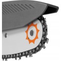 Wąska osłona pozwala na manewrowanie pilarką w trudno dostępnych miejscach, zapewniając jednocześnie bezpieczeństwo pracy.