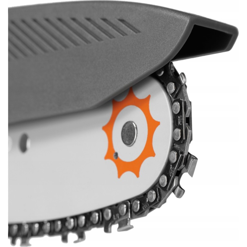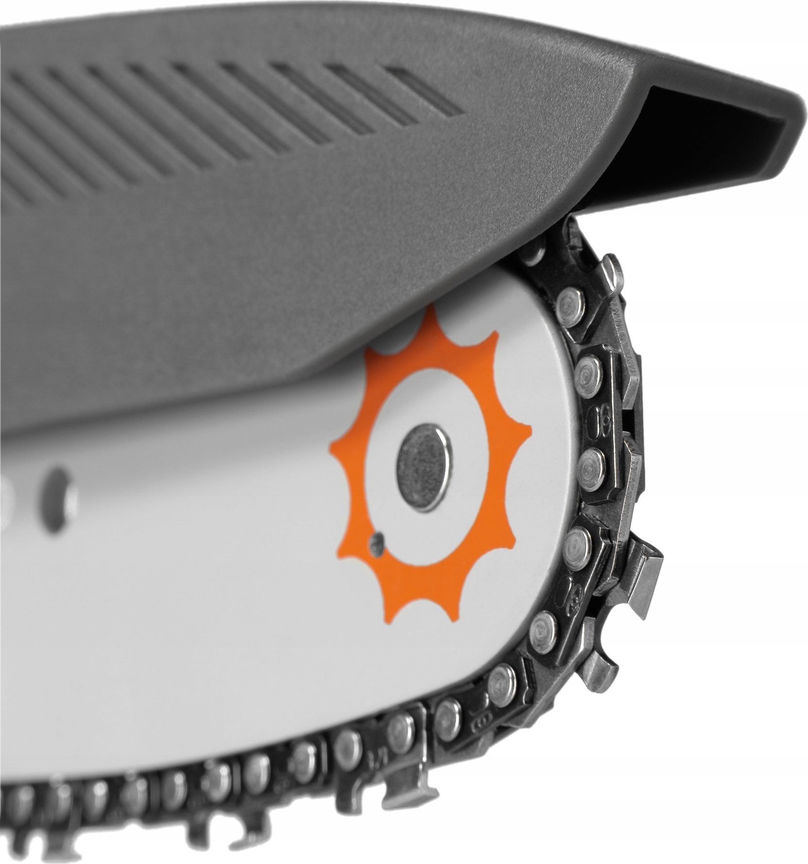 Dwustronna prowadnica o długości 20 cm i łańcuch z 48 ogniwami o podziałce 1/4” zapewniają szybkie, czyste cięcie zarówno suchego, jak i świeżego drewna.
