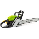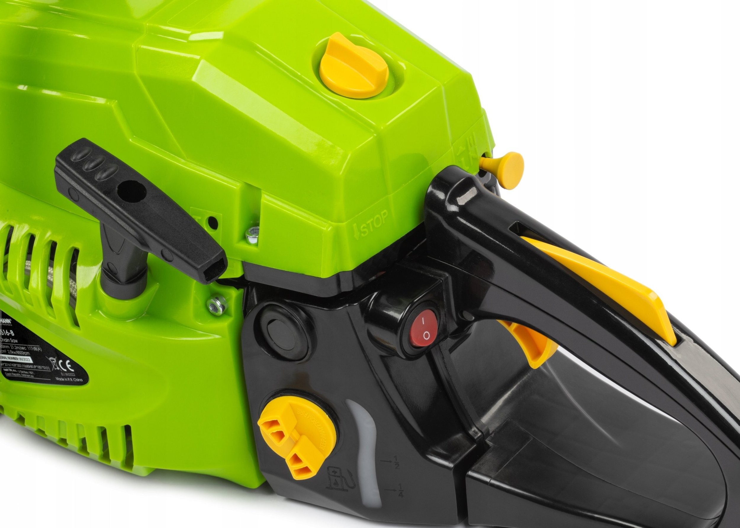 Urządzenie ma ukształtowaną, gumową rękojeść. Zapewnia pewny i stabilny chwyt, umożliwiający łatwe wykonywanie precyzyjnych ruchów prowadnicą. Miękkie wykończenie redukuje drgania. Ergonomicznie umieszczone przełączniki i elementy sterujące pozwalają na wygodną obsługę. Trzymając w ręku tę piłę spalinową, można płynnie zmieniać jej tryb działania, aby łatwo pracować z różnym rodzajem drewna.