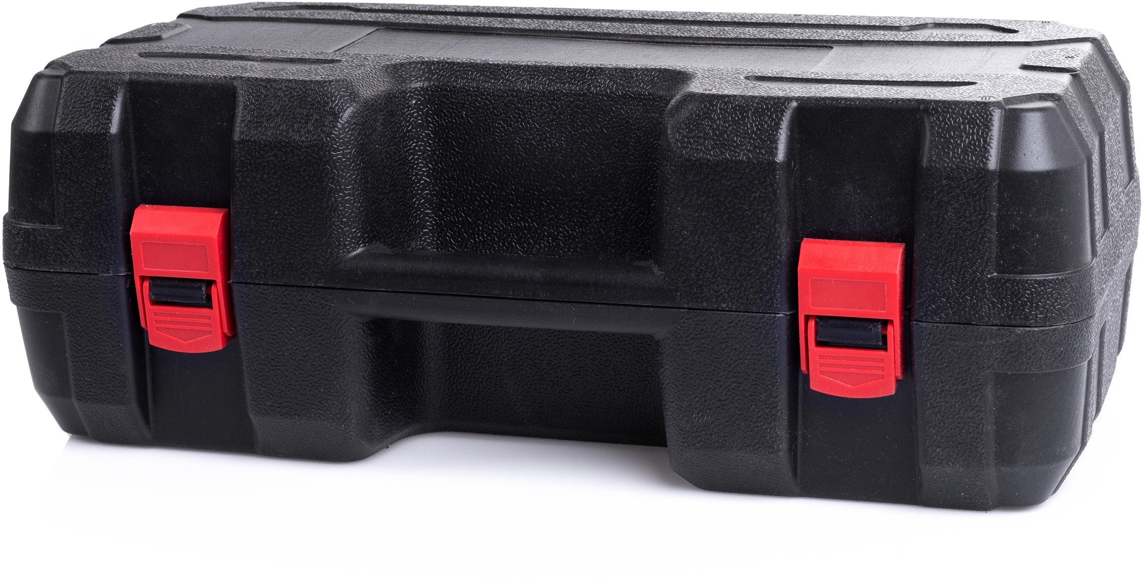 Zestaw zawiera wszystkie niezbędne akcesoria, abyś mógł rozpocząć pracę od razu po zakupie. W jego skład wchodzi pilarka, dwie baterie, ładowarka, dwa łańcuchy oraz prowadnice, a wszystko to zapakowane w praktyczną walizkę, która ułatwia przechowywanie i transport.