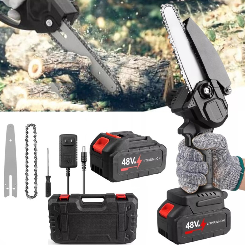 Akumulatorowa Piła Łańcuchowa 6” Mini Pilarka Gałęziowa – 850W, 2x Akumulator, Łańcuch