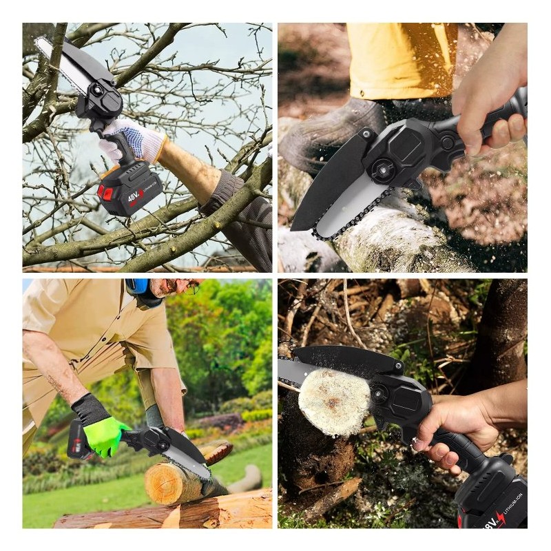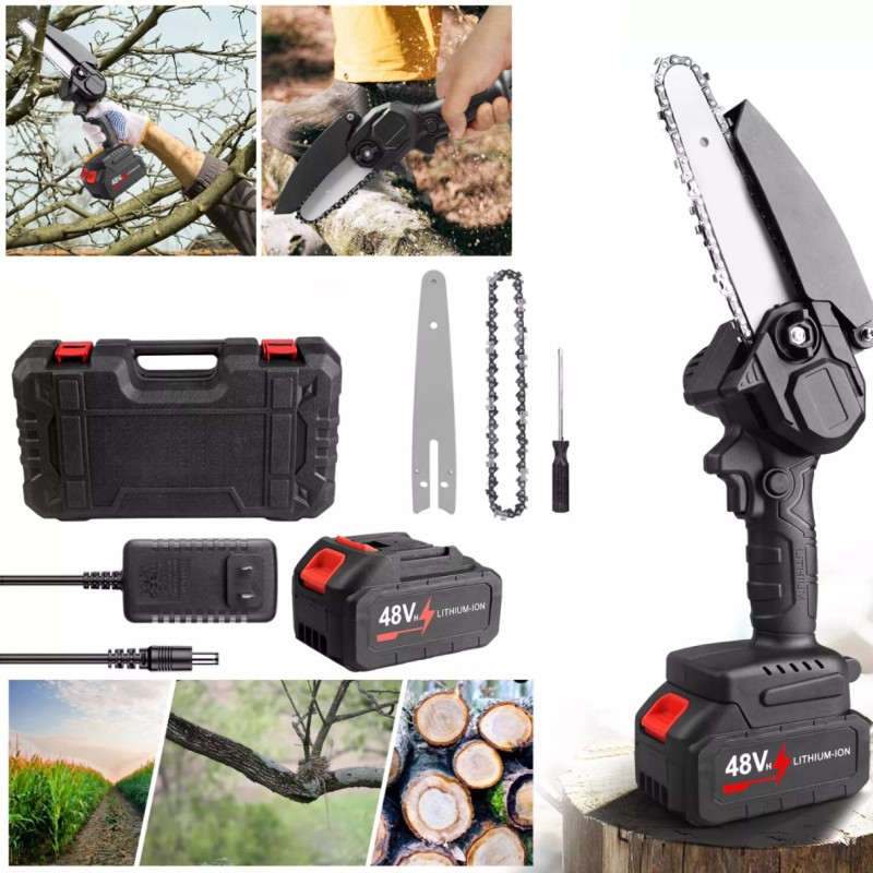 Mini pilarka gałęziowa została zaprojektowana z myślą o użytkownikach, którzy cenią sobie wygodę oraz efektywność. W zestawie znajdują się dwa akumulatory 48V, co umożliwia dłuższy czas pracy bez potrzeby częstego ładowania. Dzięki temu, prace ogrodowe i stolarskie stają się łatwiejsze i bardziej komfortowe.