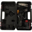 Praktyczna plastikowa walizka ułatwia przenoszenie całego zestawu z miejsca na miejsce oraz sprawia, że przechowywanie narzędzia jest dużo prostsze, i co więcej, wszystkie akcesoria są zawsze w jednym miejscu.