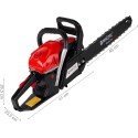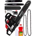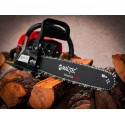 Nasza piła spalinowa jest bardzo łatwa w obsłudze - wystarczy zrobić mieszankę (olej i pojemnik w zestawie) i odpalić za pomocą łatwego startu. To takie proste! Pozostałą prace pilarka zrobi praktycznie sama przy niewielkiej pomocy użytkownika. Doświadczenie nie jest wymagane - każdy sobie na pewno bez problemu z nią poradzi. Nasza pilarka posiada wygodną, profilowaną i przede wszystkim antypoślizgową rękojeść, która zapewnia w 100% pewny chwyt, bezpieczeństwo oraz komfort podczas użytkowania. Środek ciężkości został precyzyjnie wyważony, co dodatkowo poprawia satysfakcje z pracy maszyną.