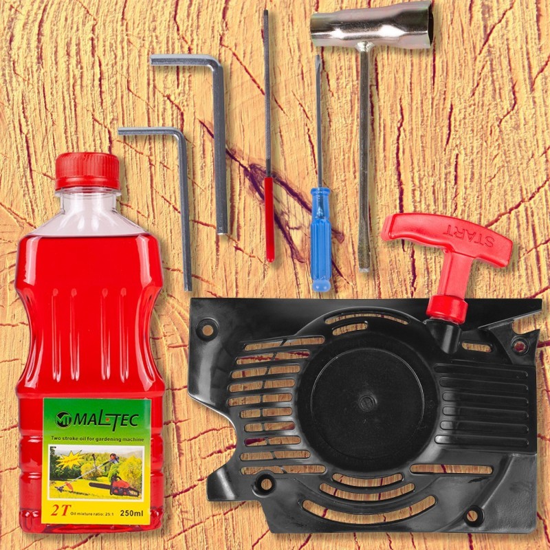 Piła wyposażona jest w system łatwego rozruchu umożliwiający szybkie uruchomienie urządzenia nawet w przypadku, gdy silnik wcześniej nie pracował i jest zimny. Zadbaliśmy o to by piła dopasowywała się do waszych potrzeb dlatego w zestawie znajdują się aż dwie prowadnice o różnych wymiarach. Wykonane z najwyższej jakości sprawiają , że urządzenie jest trwałe i nie wymaga konserwacji. Każdy dopasowany idealnie do danej prowadnicy, a jego napinanie nie wymaga specjalnych umiejętności. Idealnie sprawdzają się przy intensywnej obróbce drewna. Piła wyposażona jest w automatyczny system smarowania łańcucha.