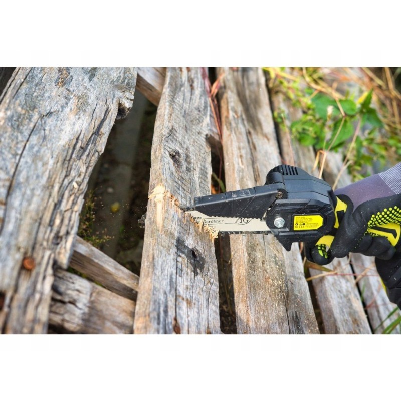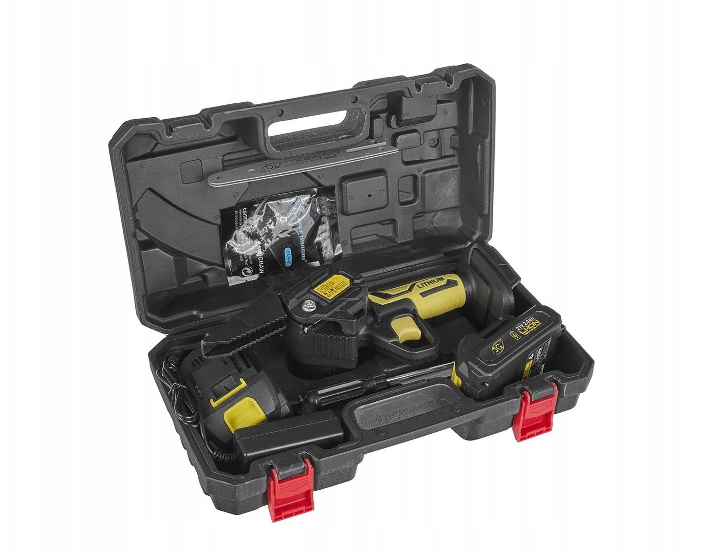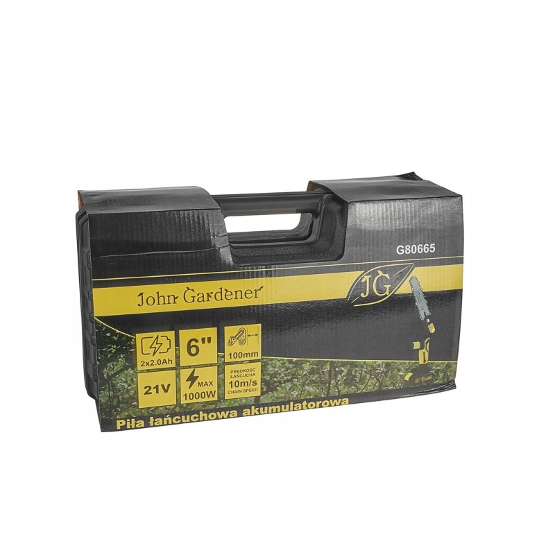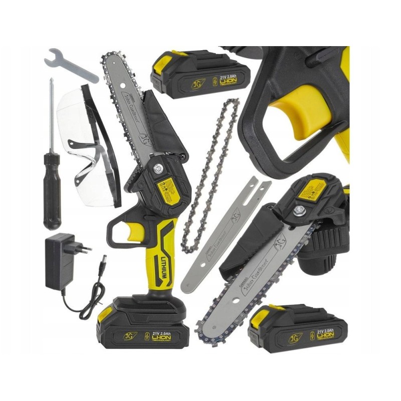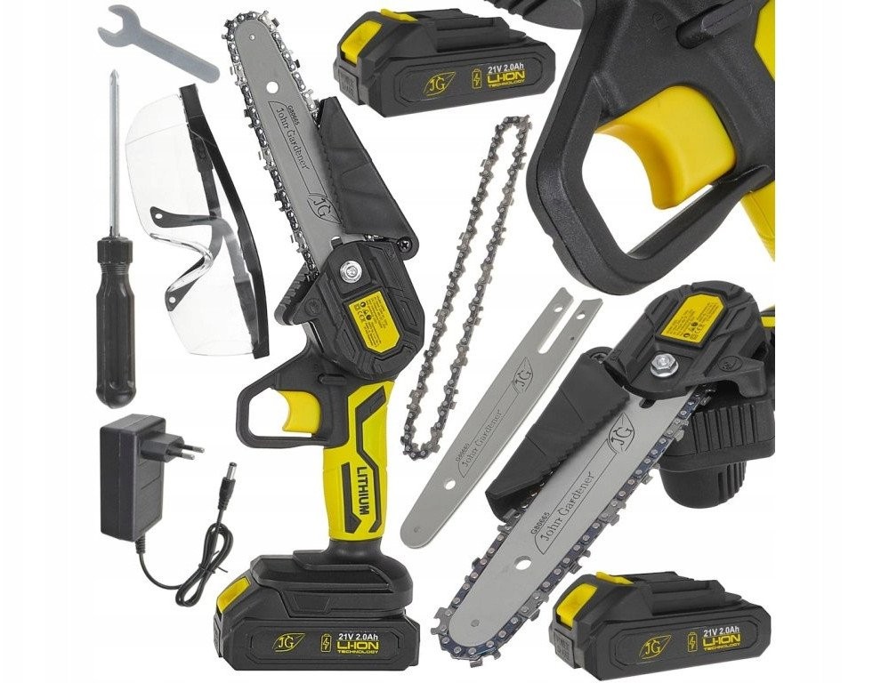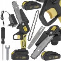- Zawartość zestawu: 2x akumulator 21V 2Ah, ładowarka, łańcuch 1/4", piła akumulatorowa, prowadnica 6"