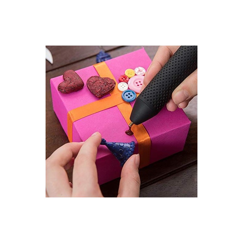 Opakowanie zawiera: klej w sztyfcie, kolorowa nasadka w kolorze Smoky Grey Grey, 2x bateria AA, ładowarka USB i kabel, 20 klejów w sztyfcie Mini Glue (8x przezroczysty, 2x żółty, 2x czerwony, 1x niebieski, 1x czarny, 1x czerwony brokat, 1x zielony brokat, 1x niebieski brokat, 1x srebrny brokat, 1x złoty brokat) pudełko