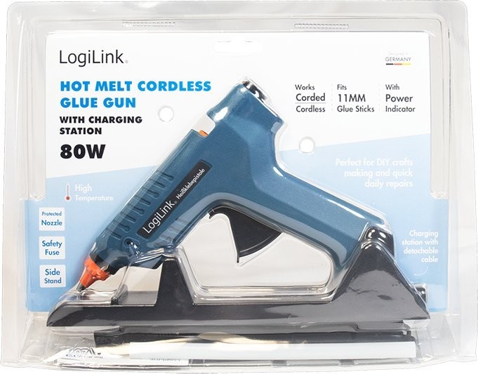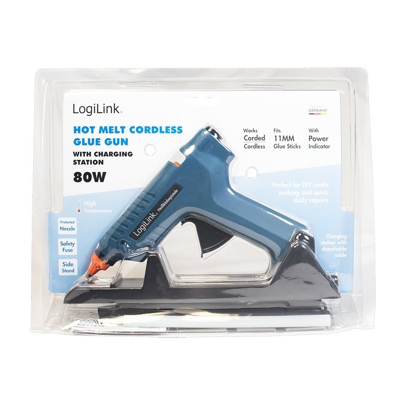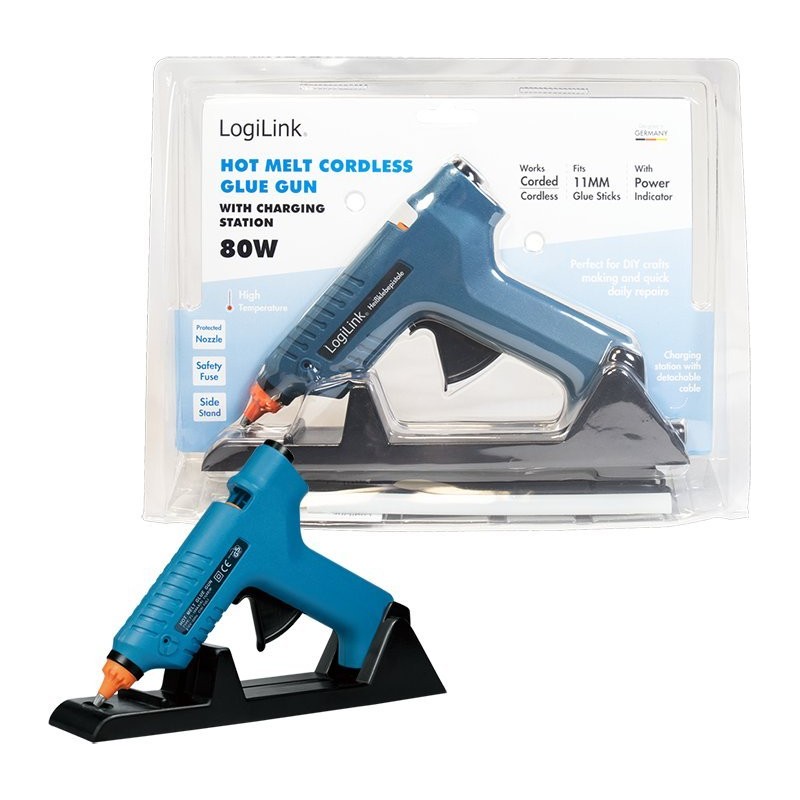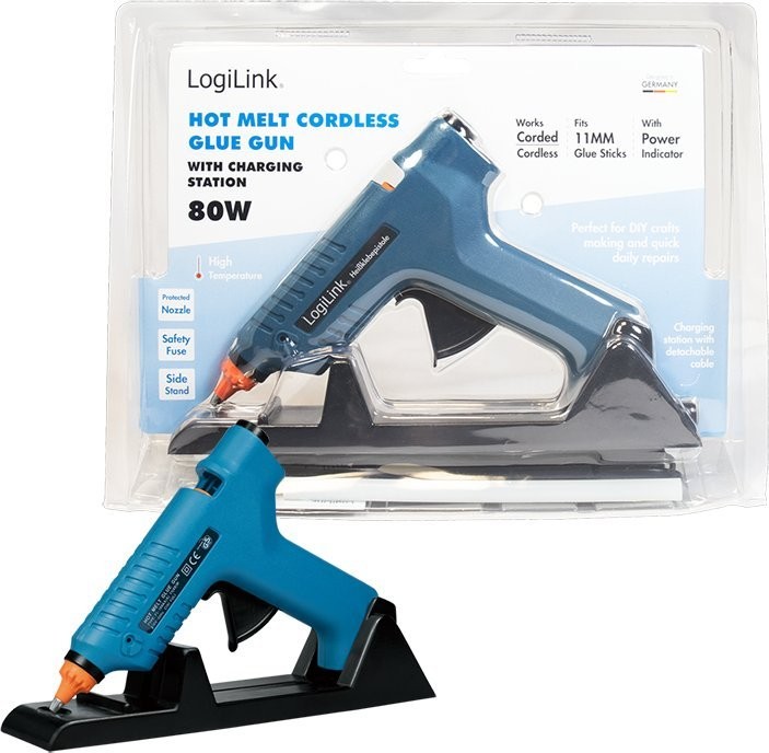 Pistolet do kleju LogiLink LogiLink Heißklebepistole, 80W, kabellos,m. Aufsteller,blau