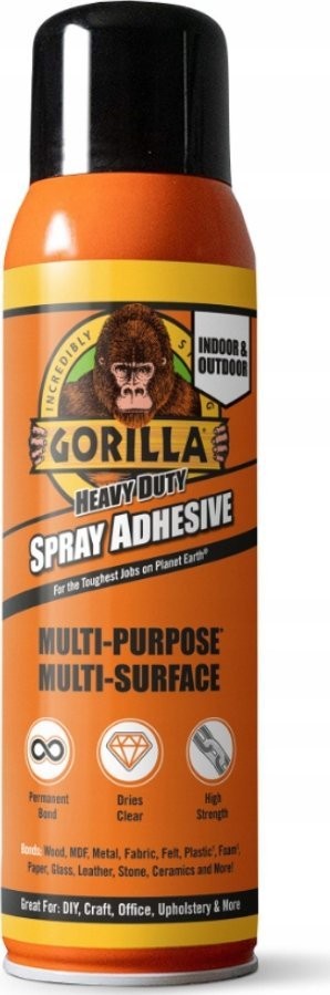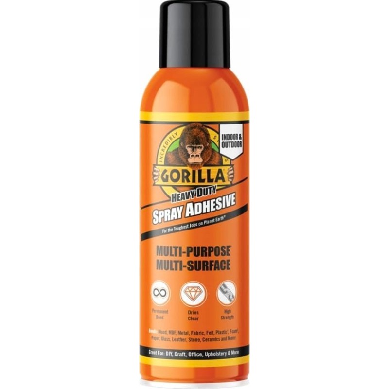 Gorilla Heavy Duty Spray Adhesive oferuje wysoką siłę wiązania, która jest połączona z znaną wytrzymałością Gorilla, zapewniającą trwałą przyczepność do szerokiej gamy zastosowań na wielu powierzchniach.