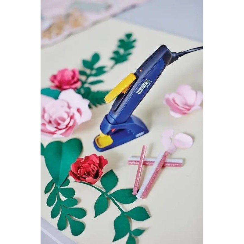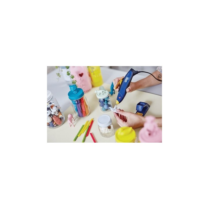 Idealny do użytku domowego, a także w projektach artystycznych i rzemieślniczych. Ten wyjątkowy pistolet do kleju w kształcie długopisu zapewnia lepszy chwyt, zaś długi spust pozwala na płynniejsze, bardziej precyzyjne klejenie i większą kontrolę podczas pracy z trudno dostępnymi lub drobnymi częściami. Nagrzewa się w zaledwie 60 sekund. Dostarczany ze stabilnym stojakiem oraz tacką ułatwiającymi zabezpieczenie podczas przerw w pracy. Zaprojektowany do użytku z naszym przezroczystym i kolorowym klejem w sztyfcie o grubości 7 mm, dzięki czemu jest idealny do wielu różnorodnych zastosowań.