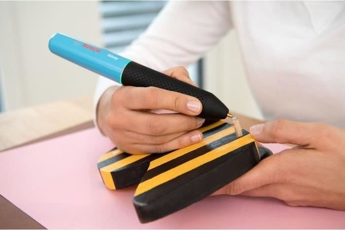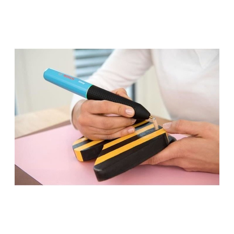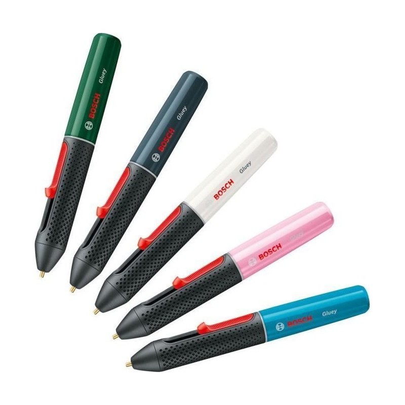 Bezprzewodowy klej w sztyfcie Bosch Gluey oferuje nieograniczone możliwości kreatywności. Niezwykle wszechstronny klej w sztyfcie oferuje bezprzewodowe i bezrozpuszczalnikowe klejenie i zapewnia doskonałe rezultaty w wielu kreatywnych projektach artystycznych i rzemieślniczych. Gluey sprawia, że klejenie jest przyjemnością dzięki kompaktowej i wygodnej konstrukcji. Ponadto jej ergonomiczny kształt zapewnia wygodny i pewny chwyt podczas pracy. Nadaje się do klejenia, mocowania lub szybkich napraw np. papieru, kartonu, korka, drewna, skóry, tekstyliów, pianki, tworzyw sztucznych (z wyjątkiem PE, PP, PTFE, styropianu i miękkiego PCV), ceramiki, porcelany, szkło i kamień . Bezprzewodowy gorący klej w sztyfcie Gluey jest zasilany dwoma przyjaznymi dla środowiska bateriami wielokrotnego ładowania AA.