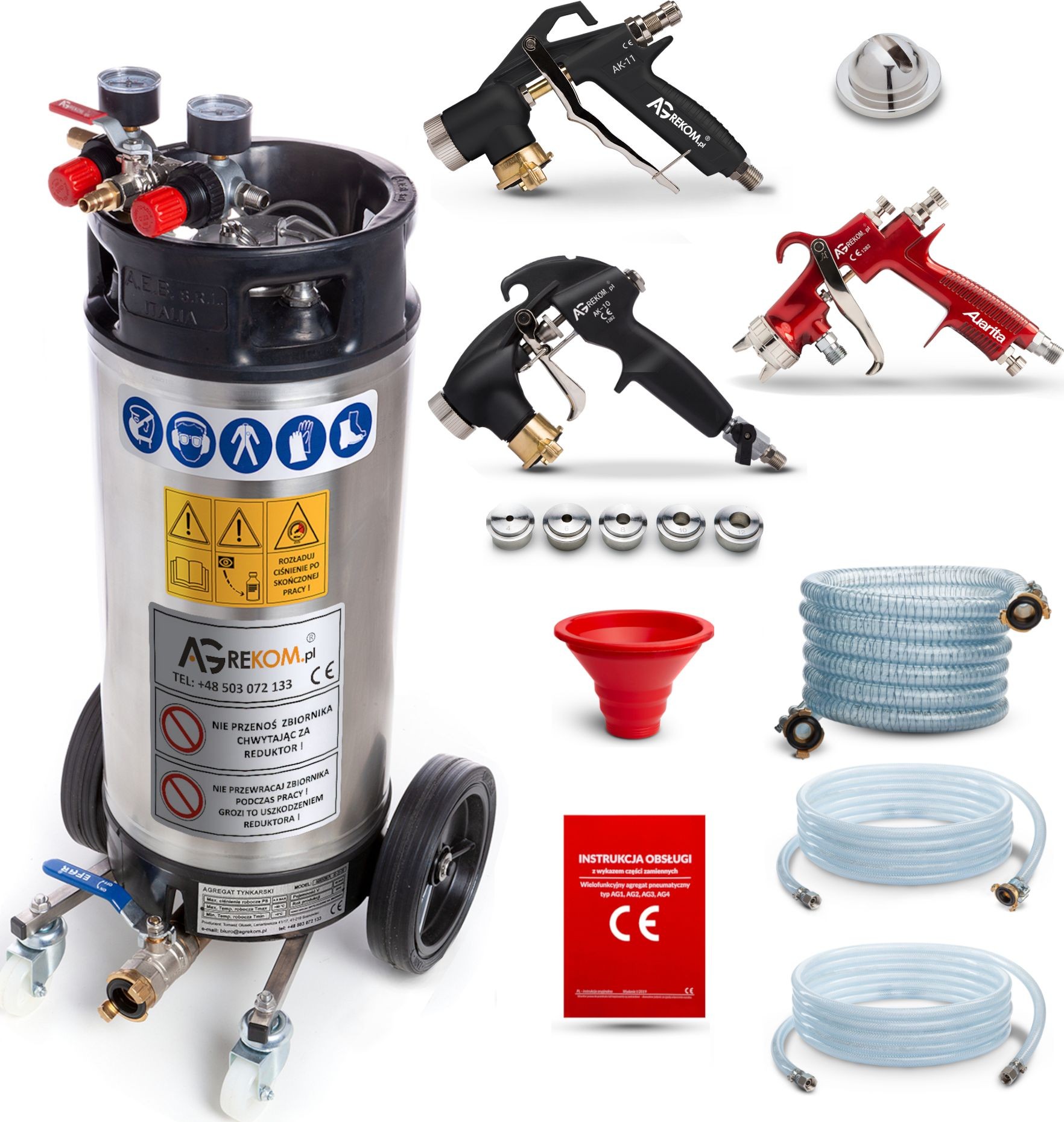 - 5 m węża zbrojonego z okuciami do podłączania pistoletu do emulsji,