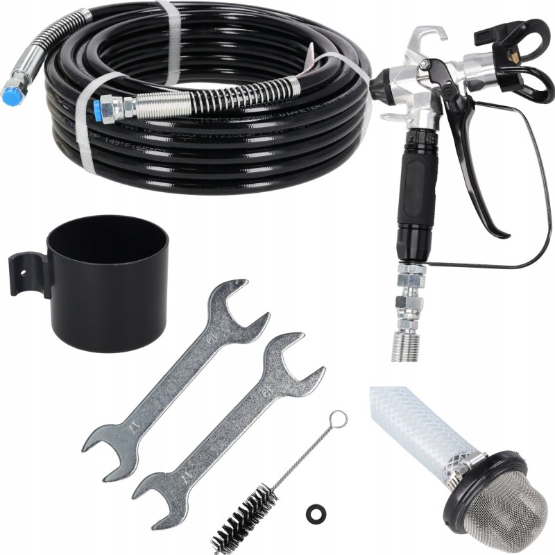 Wąż wysokociśnieniowy o długości 15 metra pozwala na malowanie bez częstego przemieszczania agregatu.