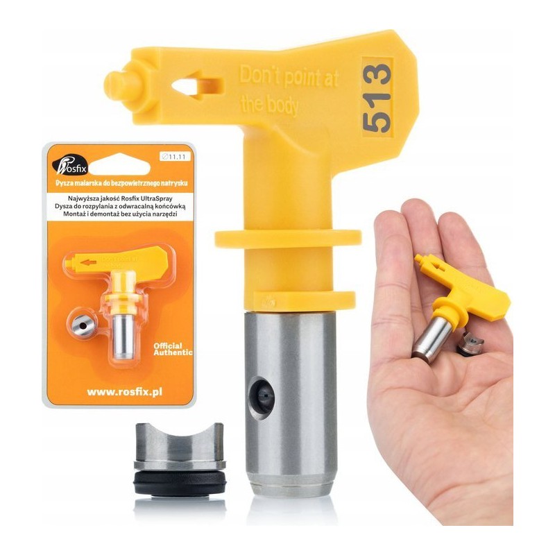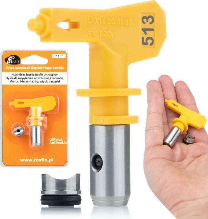 - Dysza 519: Zapewnia szeroki strumień natrysku, idealna do malowania dużych powierzchni.